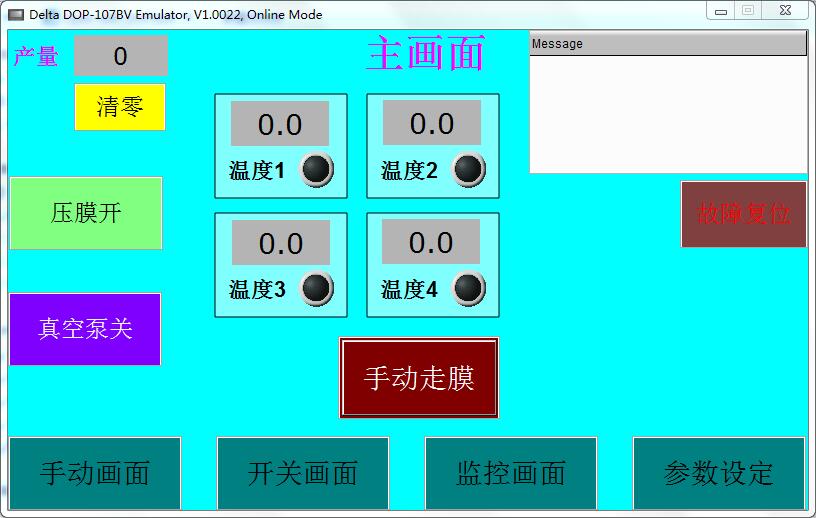 ②點(diǎn)擊“壓膜”按鍵,壓膜氣缸動(dòng)作;點(diǎn)擊“真空泵”按鍵,打開真空泵: